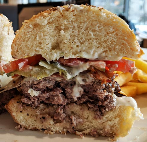 Though the patty actually looks really impressive, with a nice amount of crust, it has a bunch of issues that hold it back from being much better than okay.