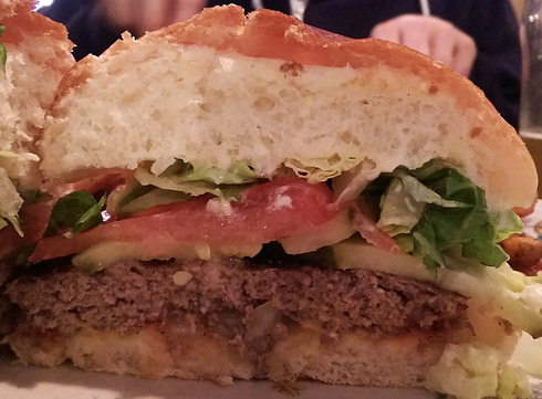 The taste, while not offensive, was non-existent; there was no particular beefy or meaty flavour. Aside from the subtle smokiness from the grill, it didn’t taste like anything.