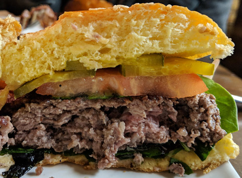 Greenwood Smokehouse’s Black Angus burger is really simply topped, with just lettuce, tomato, pickles, and nothing else. You have to admire a place that’s so confident in their hamburger that they don’t even want condiments to get in the way.