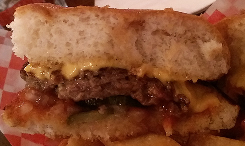 You can’t really tell from the shoddy pictures (it was kinda dark in there), but it looked good, at least. Despite the restaurant’s name, it’s a smashed-and-griddled burger (because of course it is), and it had exactly the type of dark brown crust you want to see.